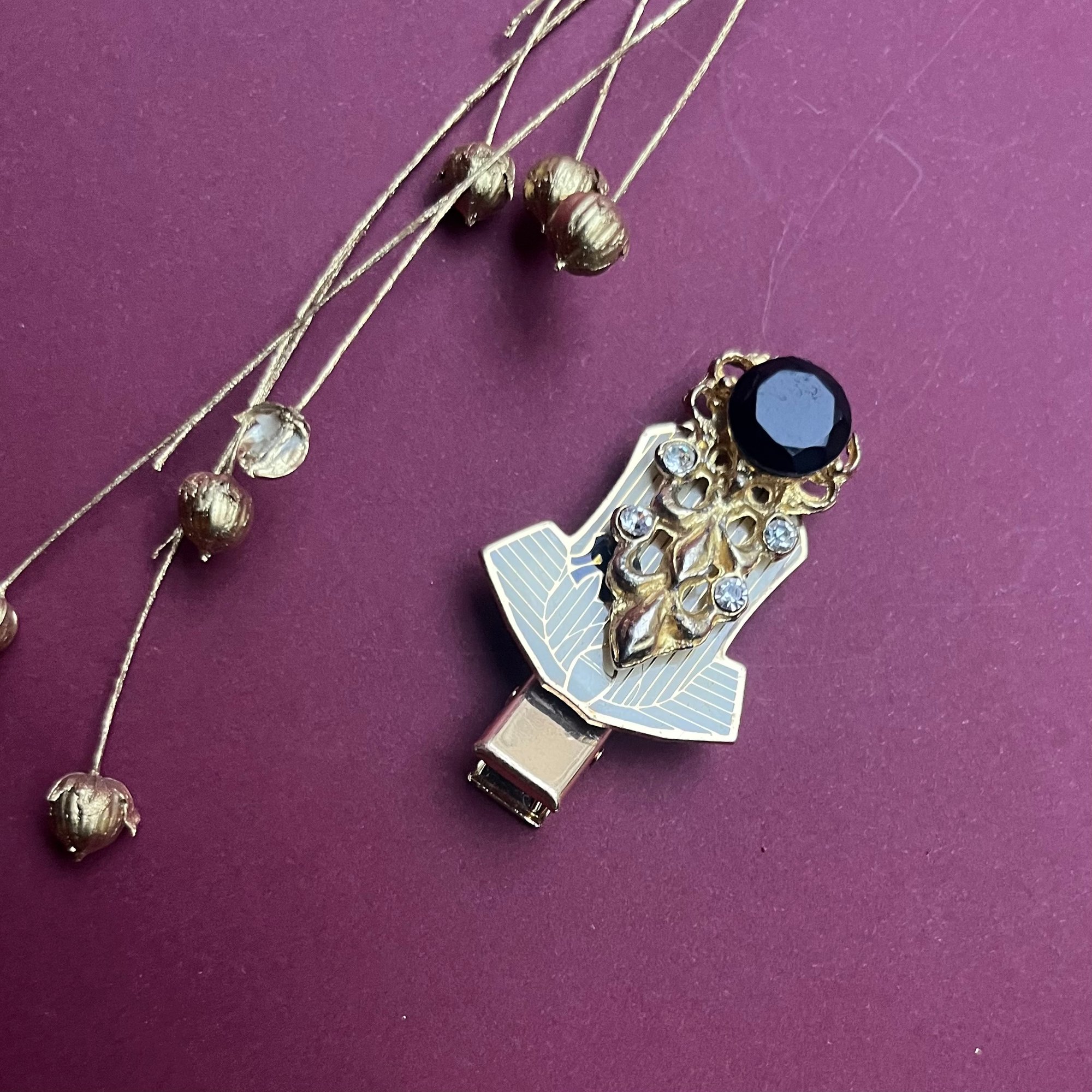La barrette "MASCAGNI" est une pièce unique composée avec des matériaux upcyclés.Collection "MARIA CALLAS"