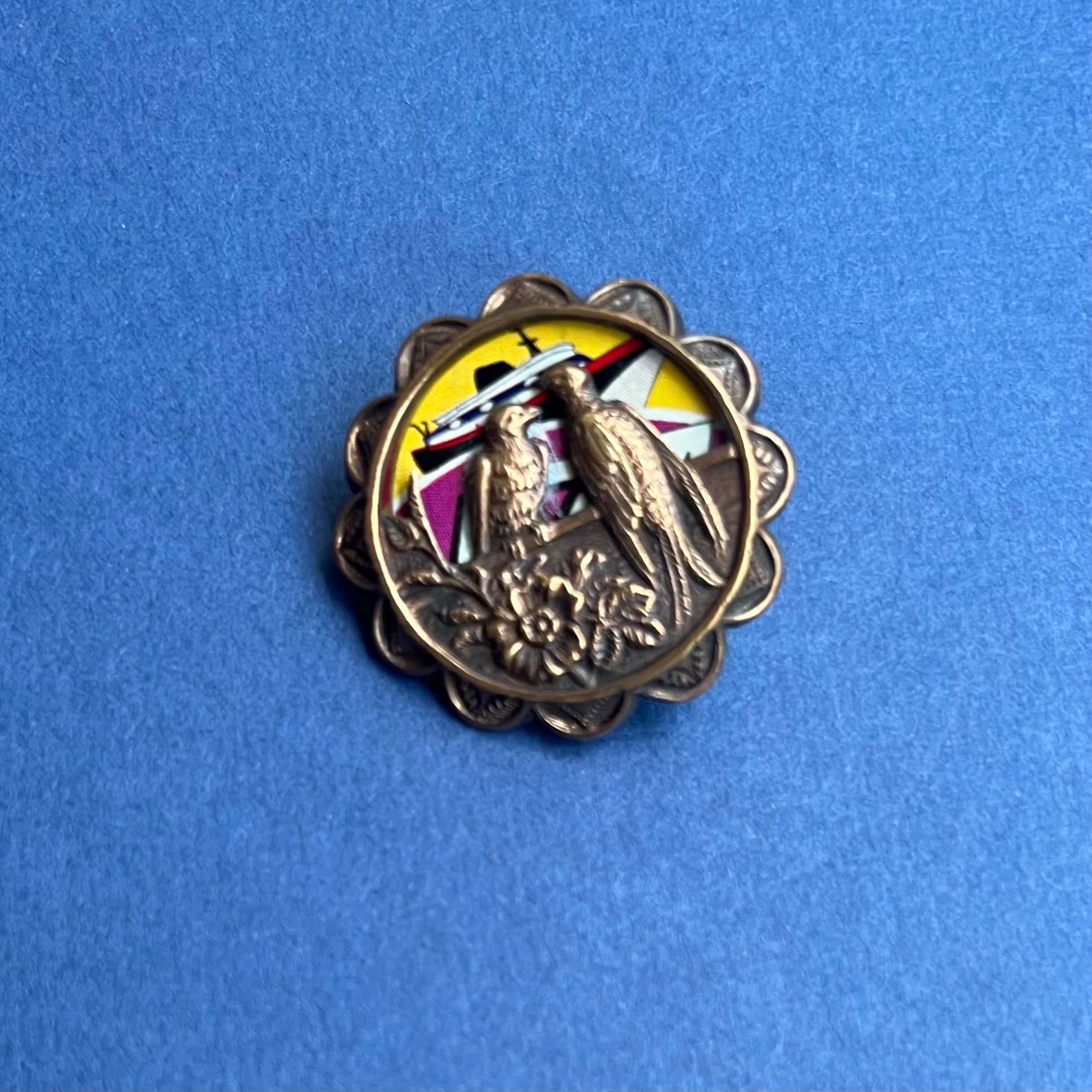 La broche "Piou-Piou" est une pièce unique composée de matériaux upcyclés.