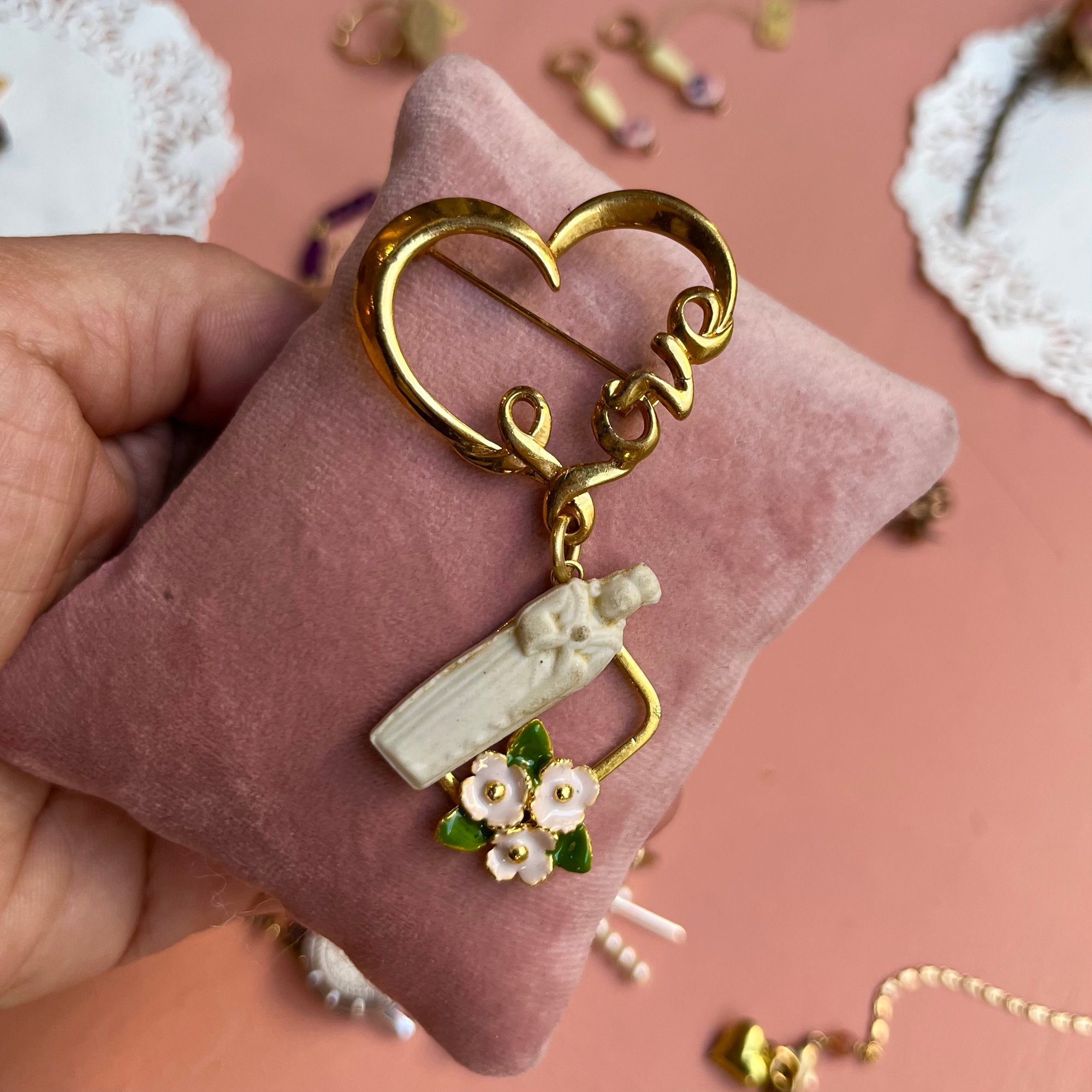 La broche "FABIOLA" est une pièce unique composée avec des matériaux upcyclés.Collection printanière "COMTESSE DE SÉGUR"