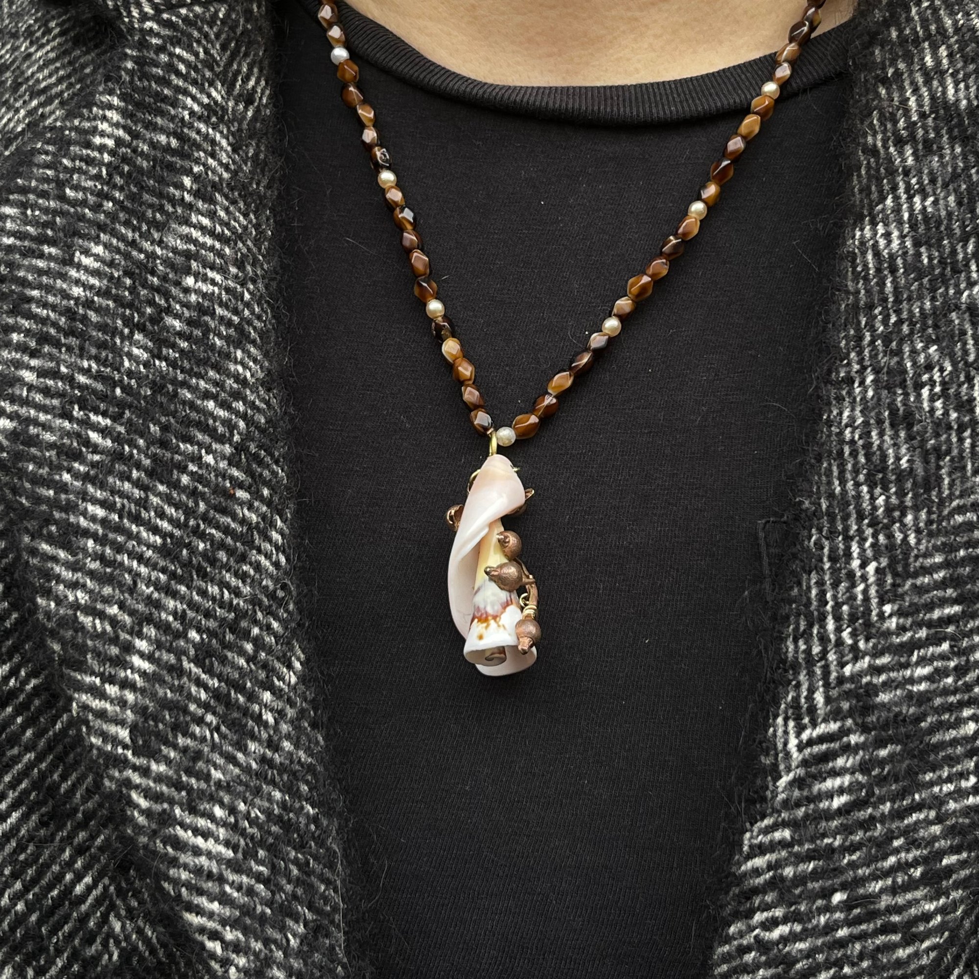 Le collier "MILANDES" est une pièce unique composée avec des matériaux upcyclés.