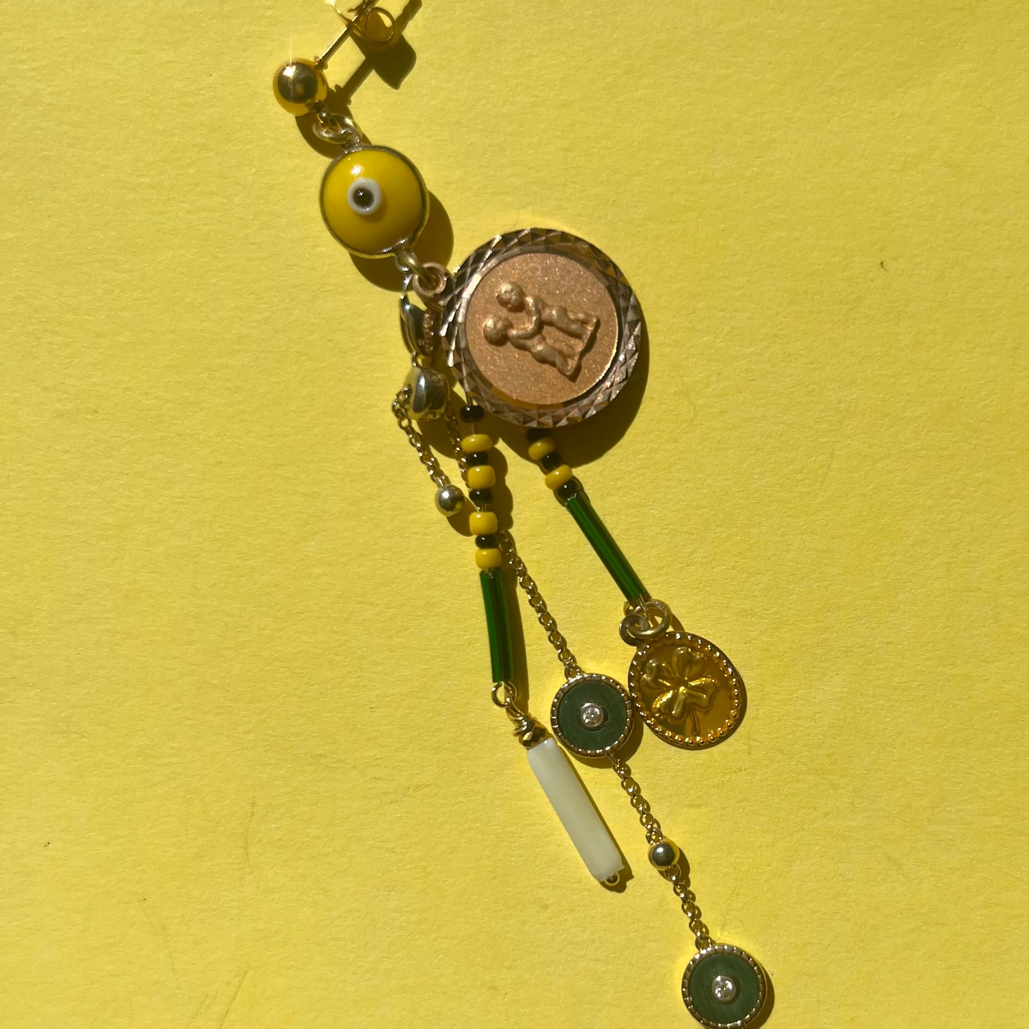 La boucle solo "GÉMEAUX" est une pièce unique composée avec des matériaux upcyclés.